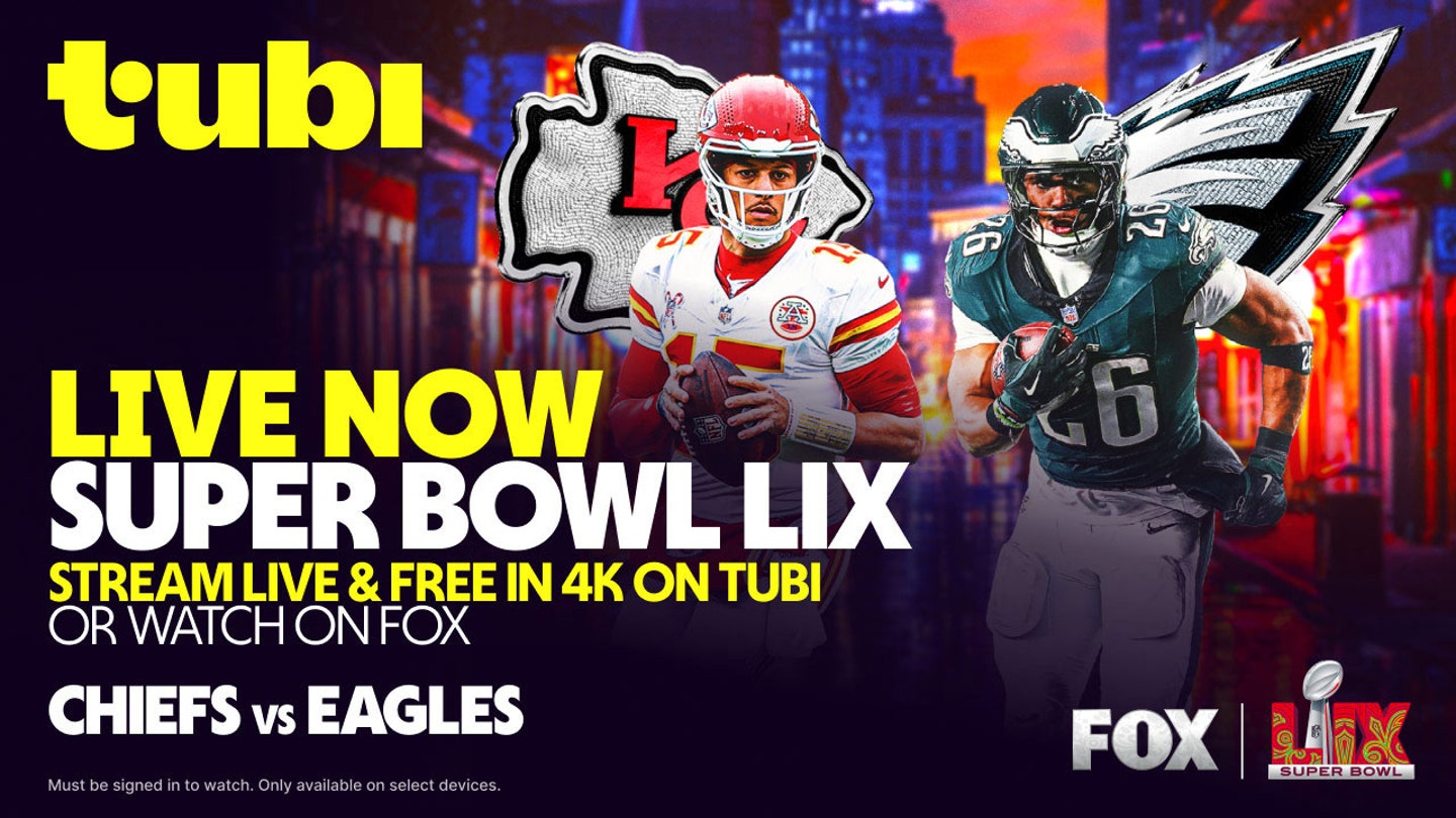 Broadcast the free Bowl Lix coverage on Tubi. (Tubi)