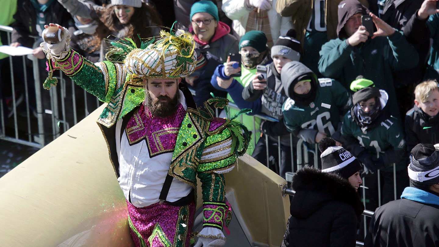 The Center for the Eagles of Philadelphia, Jason Kelce, celebrates their first Super Bowl championship with a parade at the bottom of rue Broad at the Philadelphia Museum of Art. (Imagn)