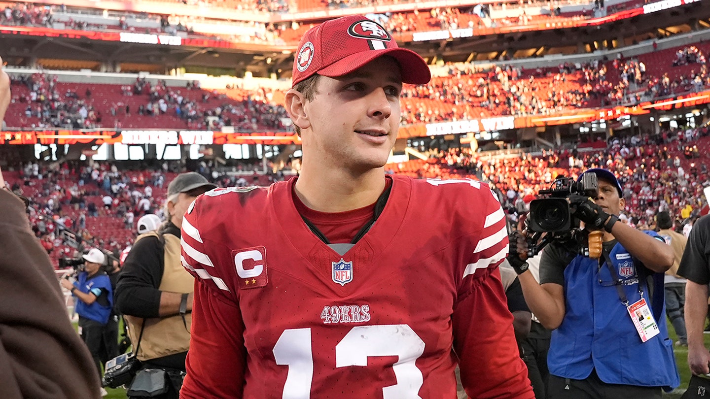 San Francisco 49ers quarterback Brock Purdy (13) leaves the field after an NFL football game against the Chicago Bears in Santa Clara, Calif., Sunday, Dec. 8, 2024. (AP Photo/Godofredo A. Vásquez)