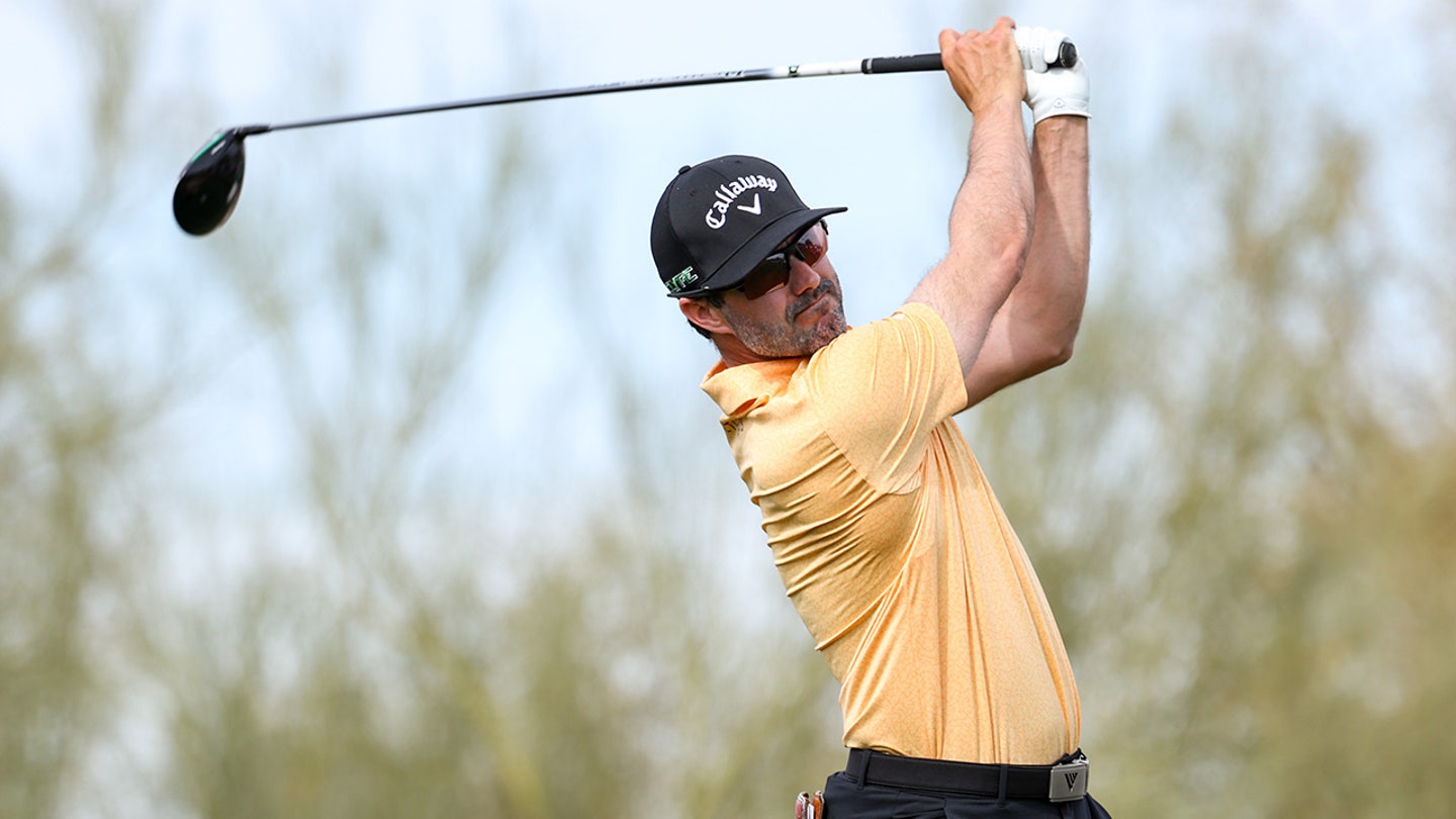 Adam Hadwin of Canada hits his TEE ball at hole 9 in the final of the WM Phoenix Open golf tournament on February 9, 2025. (Images Aryanna Frank-Imagn)