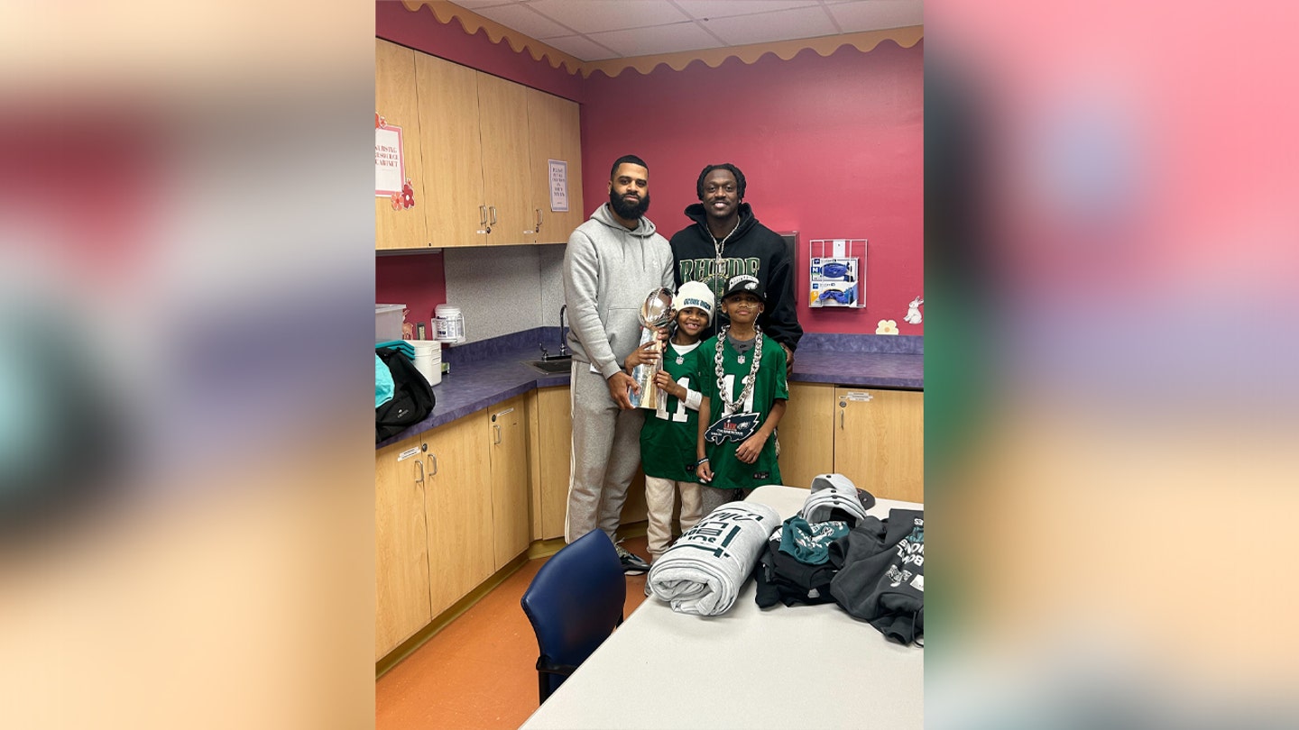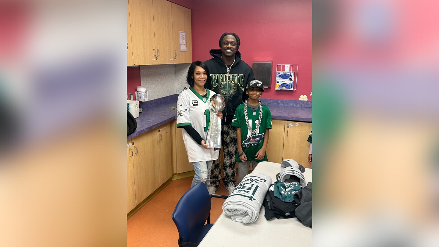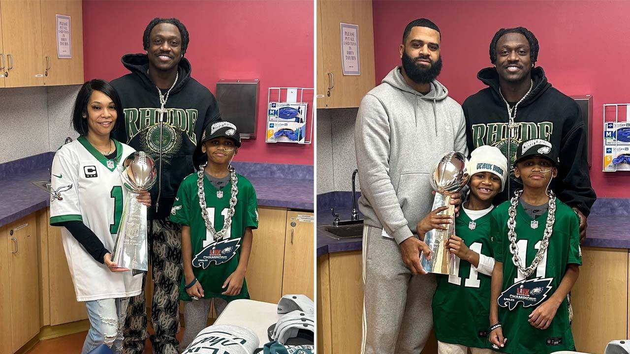Wednesday, Brown visited the Philadelphia children’s hospital with the Lombardi trophy in hand to visit Andre Howard III, 10, who heroically protected his sister from debris after a medical transport plane crashed in Philadelphia at the end of last month.