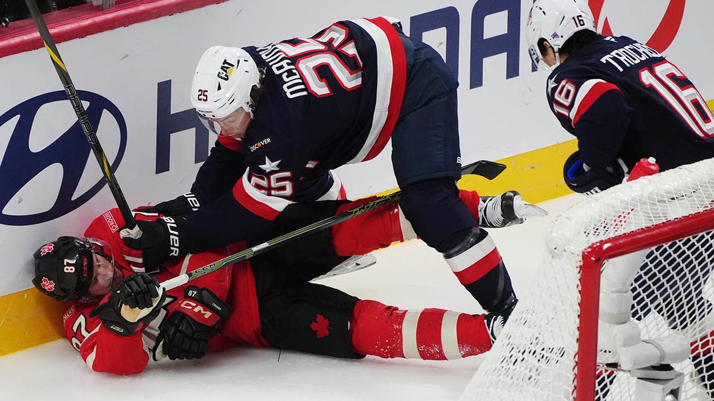 The match of confrontation of the 4 nations between the United States and Canada had sports fans of the word of the anthem everywhere and the three subsequent fights in the first 9 seconds of the match.