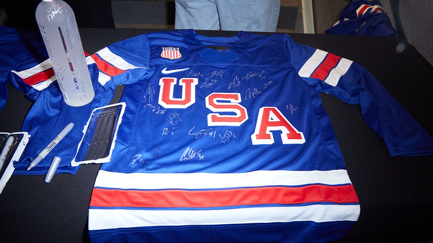 Players sign a Team USA jersey in front of E11EVEN in Miami, Florida on February 23, 2026. (Romain Maurice for PK Press Club Digital.)