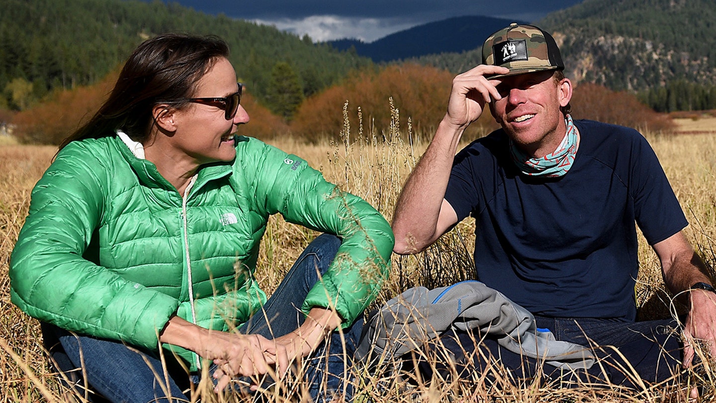 Ski mountaineers Hilaree Nelson and her partner Jim Morrison pose for a portrait in a meadow near Lake Tahoe in Squaw Valley, California, October 19, 2015. (Jason Bean/USA TODAY NETWORK)