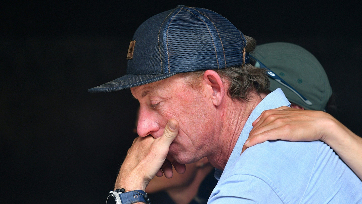 Jim Morrison, partner of American ski mountaineer Hilaree Nelson, reacts during the funeral pyre before her cremation in Kathmandu, October 2, 2022. A search team recovered the body of the great American ski mountaineer Nelson in the Himalayas on September 28, two days after she disappeared on the slopes of Nepal’s Manaslu peak. (PRAKASH MATHEMA/AFP via Getty Images)