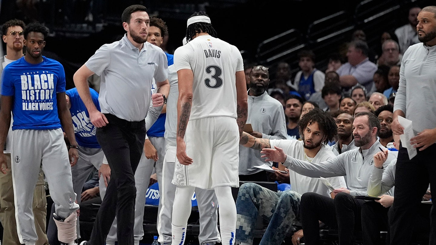 The Mavericks striker Anthony Davis leaves the match on Saturday February 8, 2025, in Dallas. (Photo / lm otero)