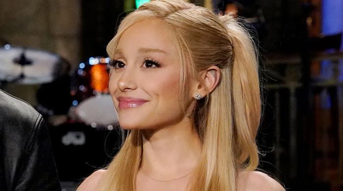 Grande donned a custom pastel pink satin dress from Loewe, featuring a backless design, square-shaped bodice and matching satin shawl.