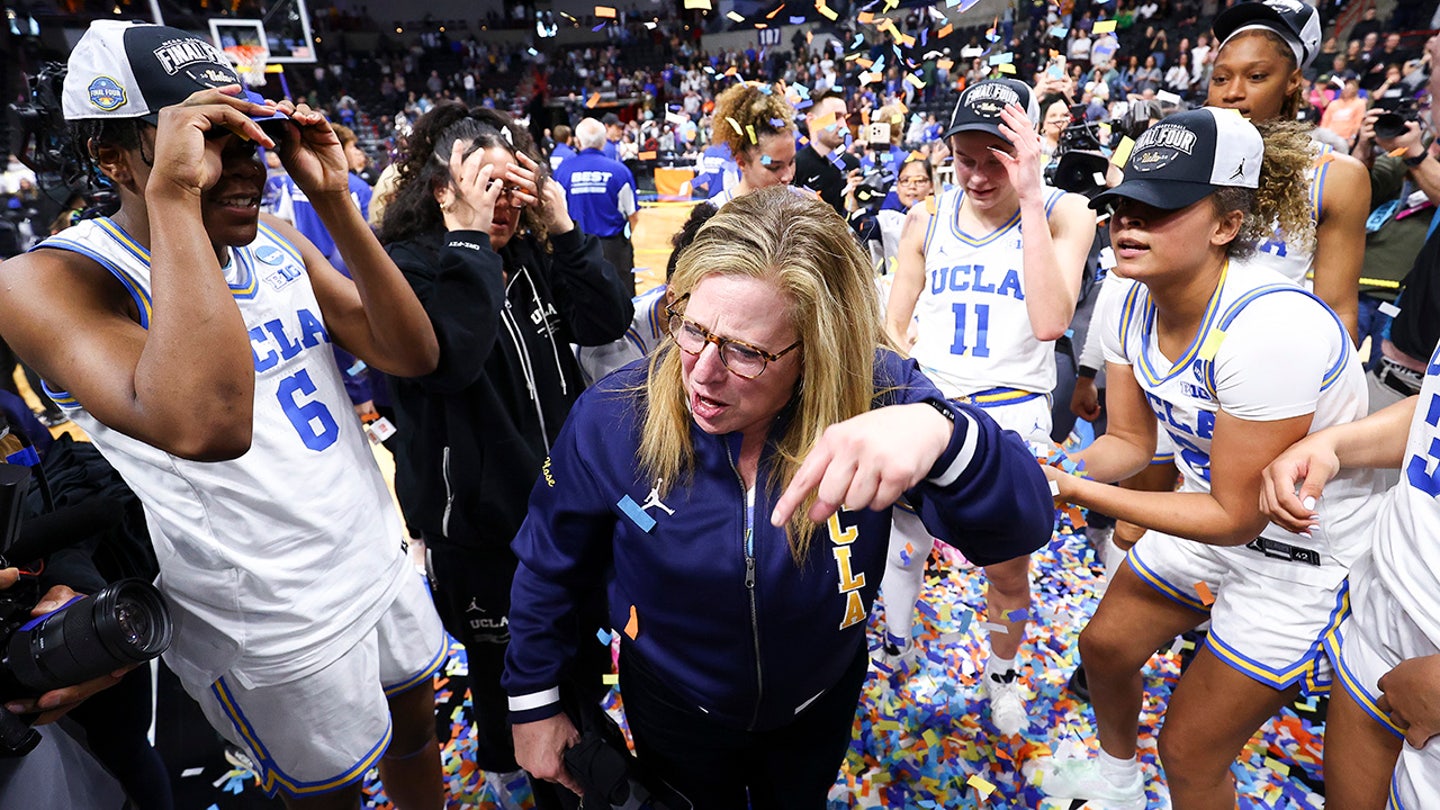 Head coach Cori Close of the UCLA Bruins celebrates after a game against the LSU Lady Tigers during the Elite Eight round of the 2025 NCAA women’s basketball tournament held at Spokane Arena on March 30, 2025 in Spokane, Washington. (Tyler McFarland/NCAA Photos via Getty Images)