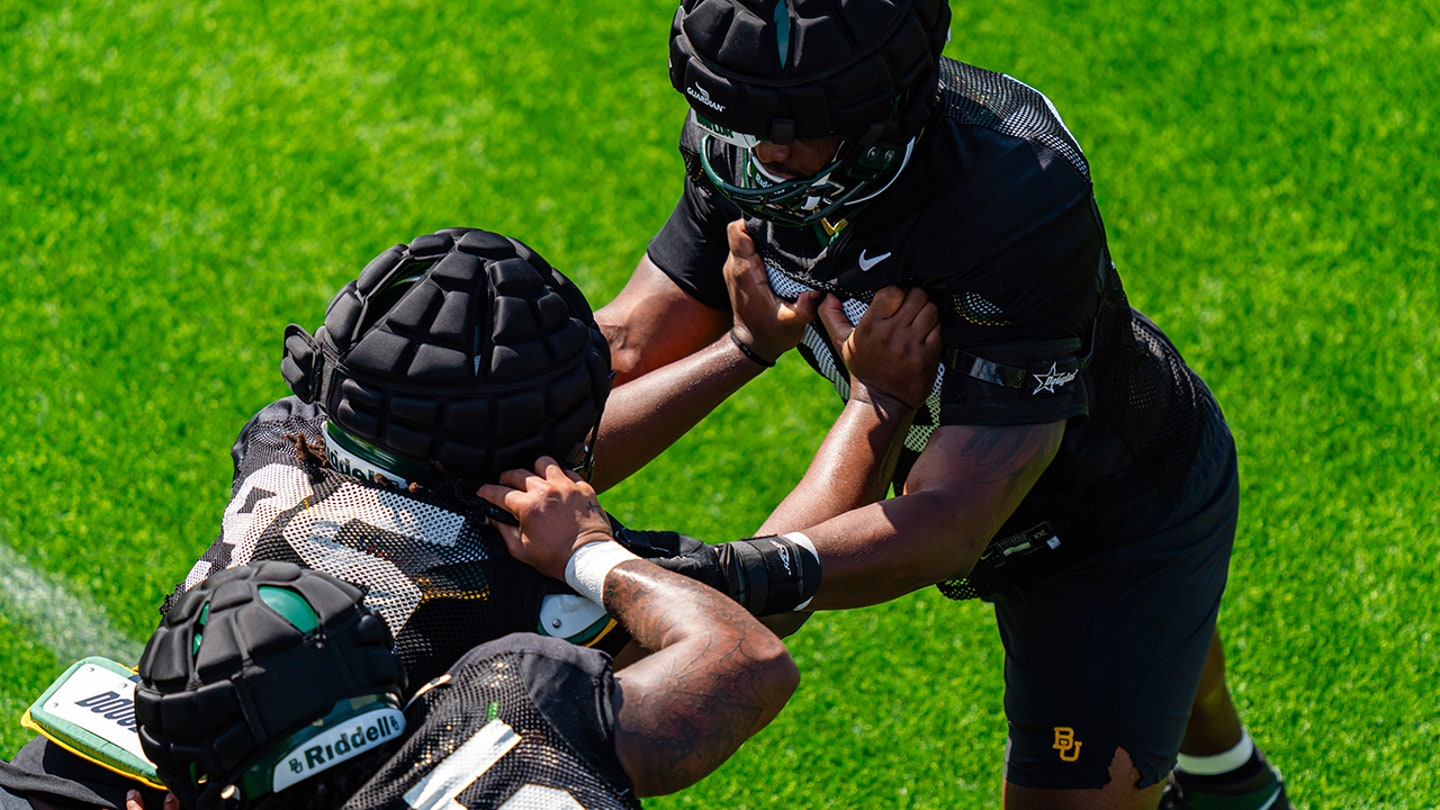 Alex Foster, # 95, participates in the exercises during fall training at the Simpson Athletics Complex on August 3, 2024 in Waco, Texas. (Joaquin Torre / Baylor Athletics / University images via Getty Images)