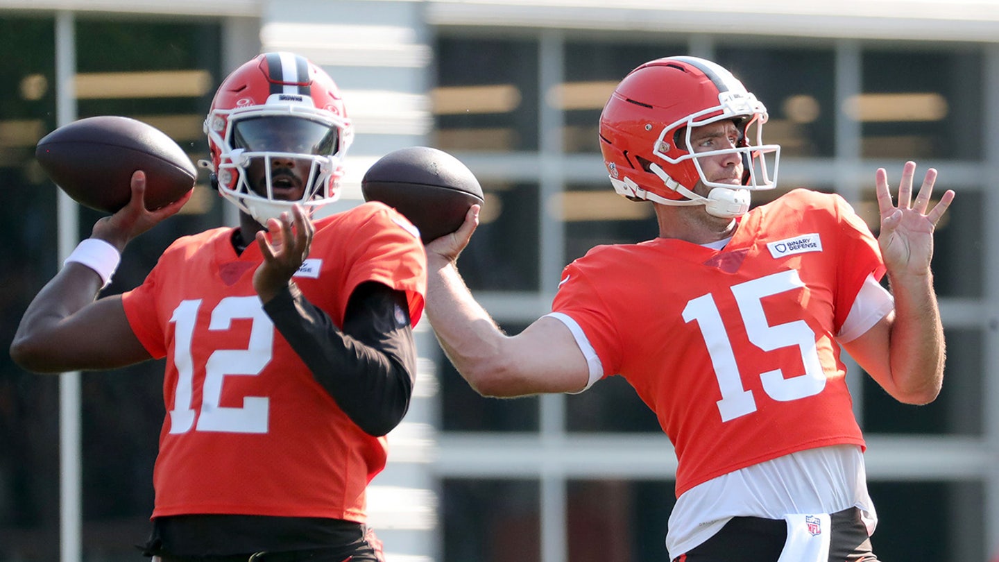 Cleveland Browns Joe Flacco’s quarterrier (15) and the quarter-Arrière Shemer Sanders (12) look at the field during the NFL training camp at the CrossCountry Mortgage Campus, Wednesday, July 30, 2025, in Berea, Ohio. (Jeff Lange / USA Today Network via Imagn Images)