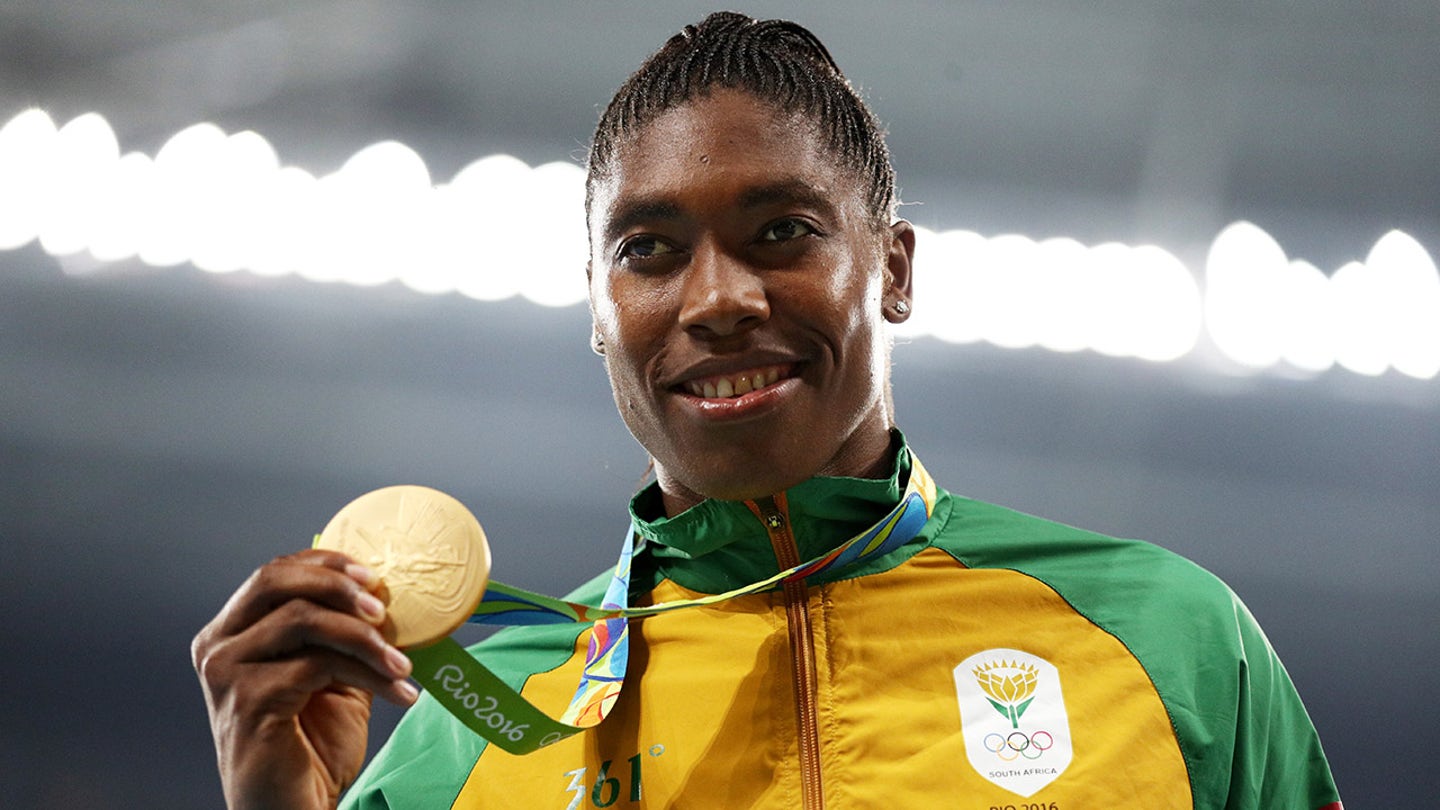 The Caster Semenya gold medalist in South Africa is on the podium during the medal ceremony for the 800 meter female on August 15, 2016 of the Rio 2016 Olympic Games at the Olympic stadium on August 20, 2016, in Rio de Janeiro, in Brazil. (Patrick Smith / Getty Images)