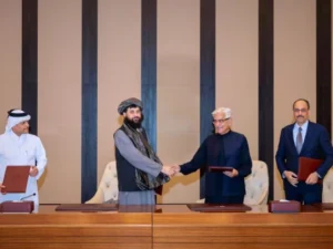 Both sides agree to maintain the ceasefire on the condition that Afghan soil is not used for attacks against Pakistan. Defense Minister Khawaja Muhammad Asif and Afghan Defense Minister Mullah Mohammad Yaqoob Mujahid shake hands after signing a ceasefire agreement brokered by Qatar and Turkey in Doha on October 19. Photo: Reuters Pakistan and the […]