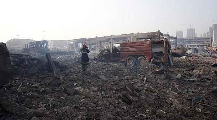 An image of representation showing a firefighter recording the consequences on the site of the explosions in Tianjin on August 15, 2015. – AFP