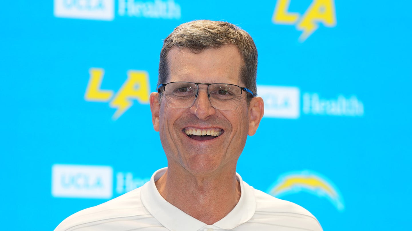 Los Angeles Chargers coach Jim Harbaugh during a press conference at the Bolt in El Segundo CA, USA on May 7, 2025. (Kirby Lee/Imagn Images)