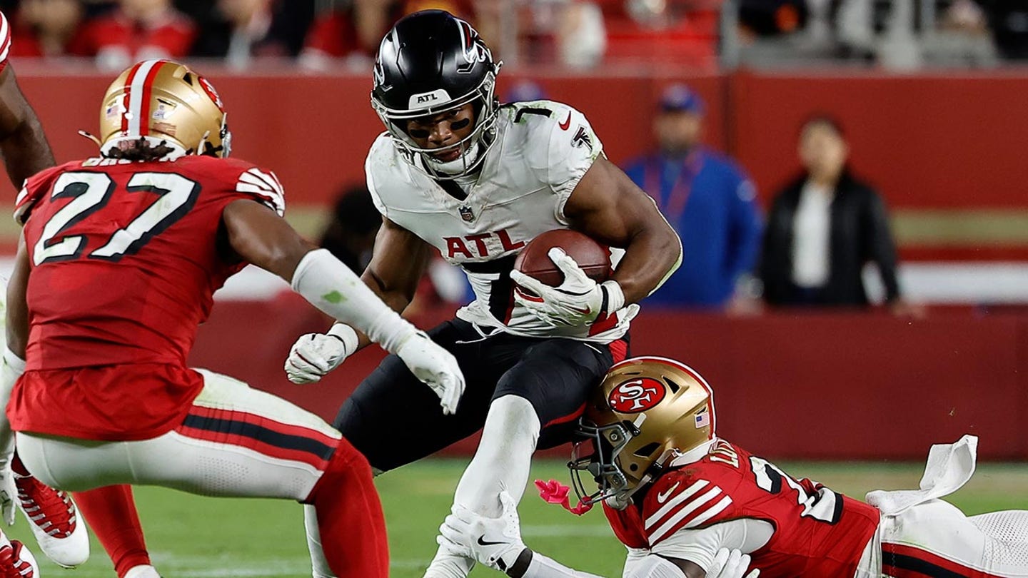 The 49ers were able to hold running back Bijan Robinson to 40 yards rushing on 14 carries. He had six catches for 52 yards and a touchdown. San Francisco quarterback Mac Jones replaced Brock Purdy. He totaled 152 passing yards and one interception.