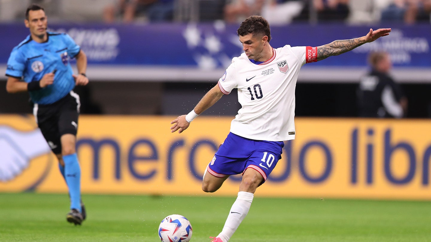 Christian Pulisic kicks the ball during the CONMEBOL Copa America 2024 Group C match at AT&T Stadium in Arlington, Texas on June 23, 2024. (Omar Vega/Getty Images)