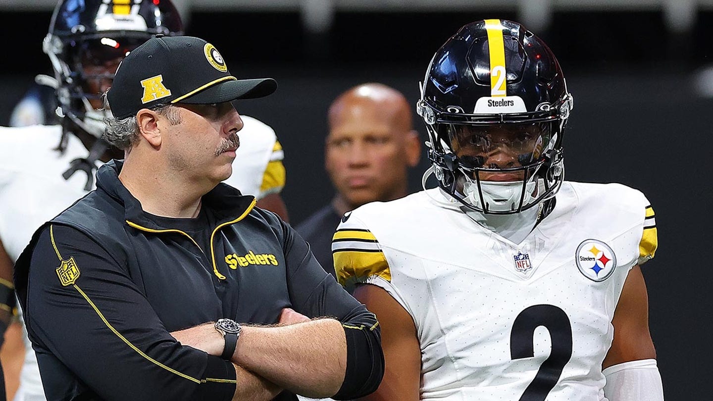 The offensive coordinator Arthur Smith considers that Justin Fields, n ° 2 of the Pittsburgh Steelers, warms up before facing the Falcons of Atlanta at Mercedes-Benz Stadium on September 8, 2024 in Atlanta, Georgia. (Images Kevin C. Cox / Getty)