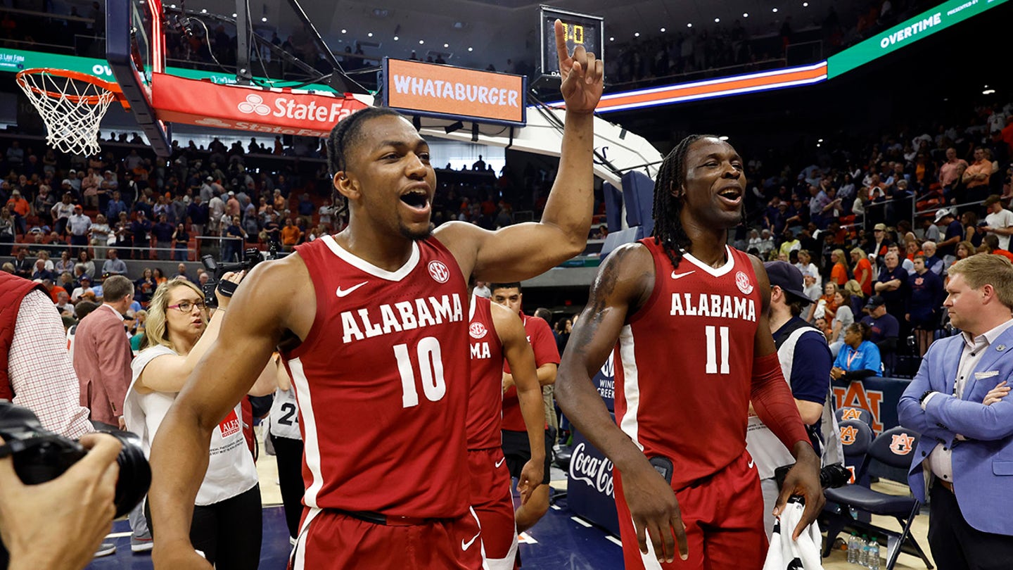 The n ° 7 Alabama beat Auburn, 93-91, the best classified, on the road with a buzzer-battery in overtime on Saturday in a regular season final.