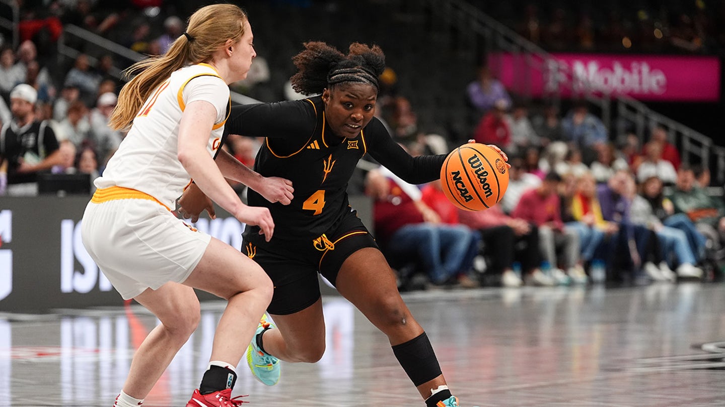 Jyah Lovett (4) from Arizona State Sun Devils exceeds Emily Ryan (11) of the Iowa State cyclones during the fourth quarter in the second round of the Big 12 female tournament at T-Mobile Center on March 6, 2025, in Kansas City, me. (Images Kyle Rivas / Getty)
