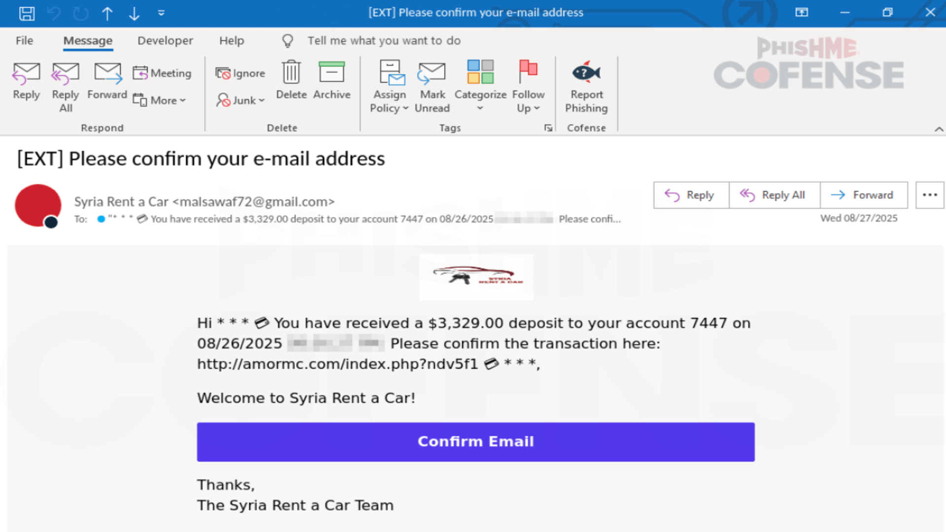 Cofense explains how the scam begins with an email that appears to come from a legitimate business, such as a car rental company, claiming that a refund is pending confirmation.