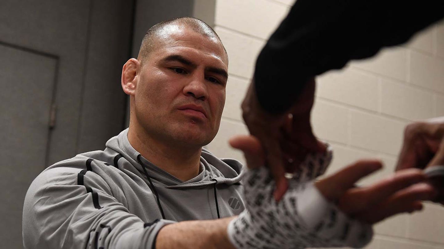 Cain Velasquez has his hands rolled back behind the scenes during a UFC combat night event at Talking Stick Resort Arena on February 17, 2019, in Phoenix, Ariz. (Mike Roach / Zuffa LLC / Zuffa LLC via Getty Images)