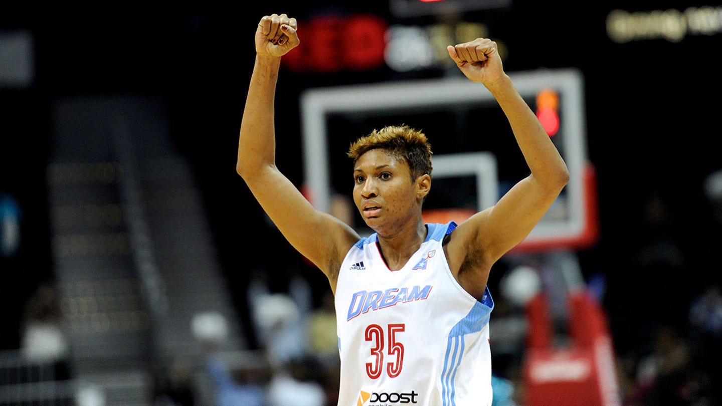 September 23, 2013; Atlanta, GA: Atlanta’s dream guard Angel McCOUGHTRY (35) reacts to the play against Washington’s mystics during the second half to Philips Arena. (Dale Zanine-USA today Sports)