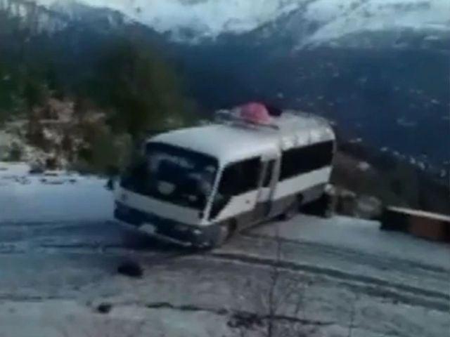 A video of the incident has surfaced online, showing the vehicle slipping on the snowy road before losing control.