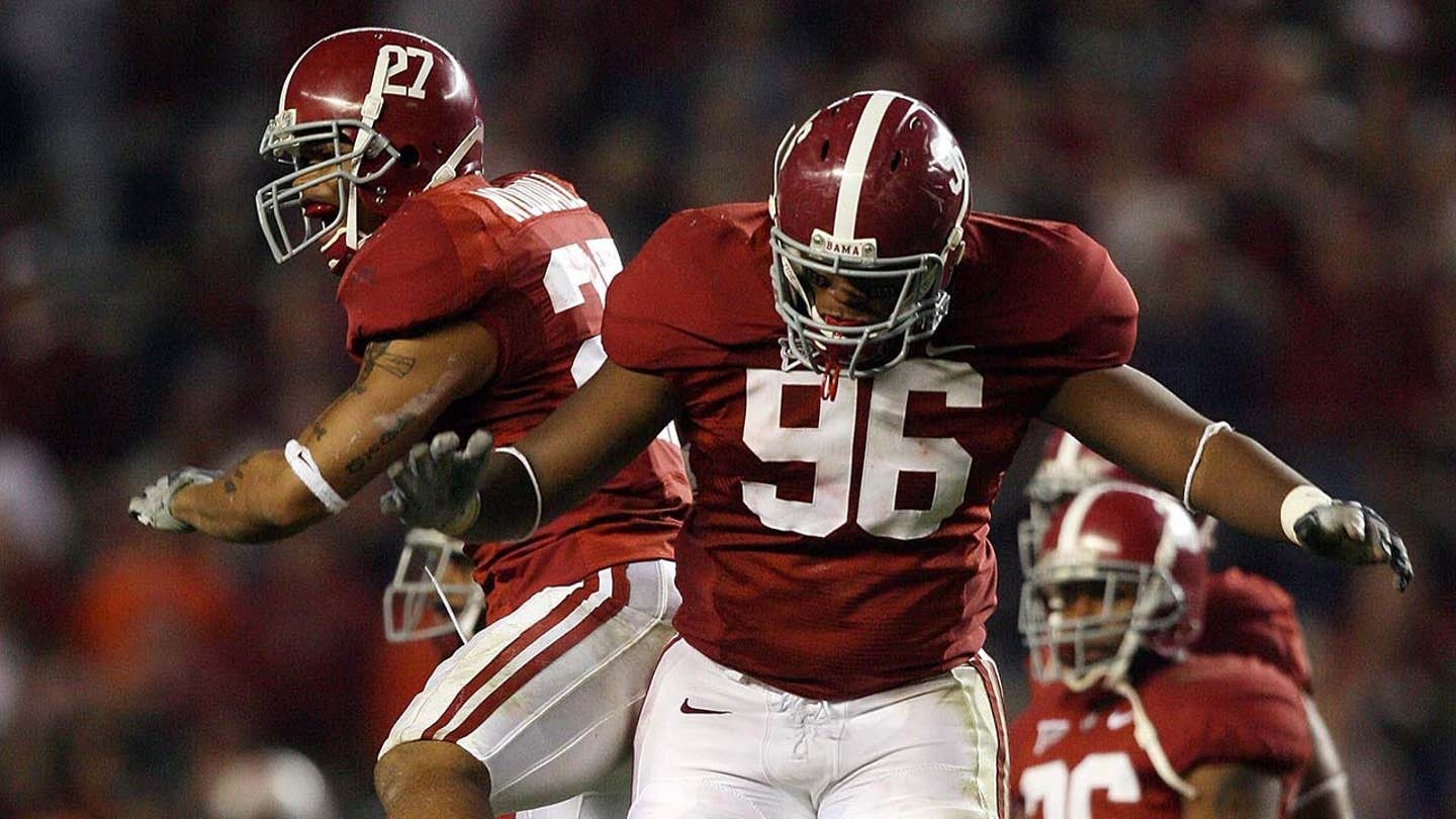 Alabama defensive lineman Luther Davis celebrates after the Crimson Tide defeated the Florida Gators 32-13 in the 2009 SEC championship game at the Georgia Dome in Atlanta on December 5, 2009. (Dale Zanine/USA TODAY Sports)