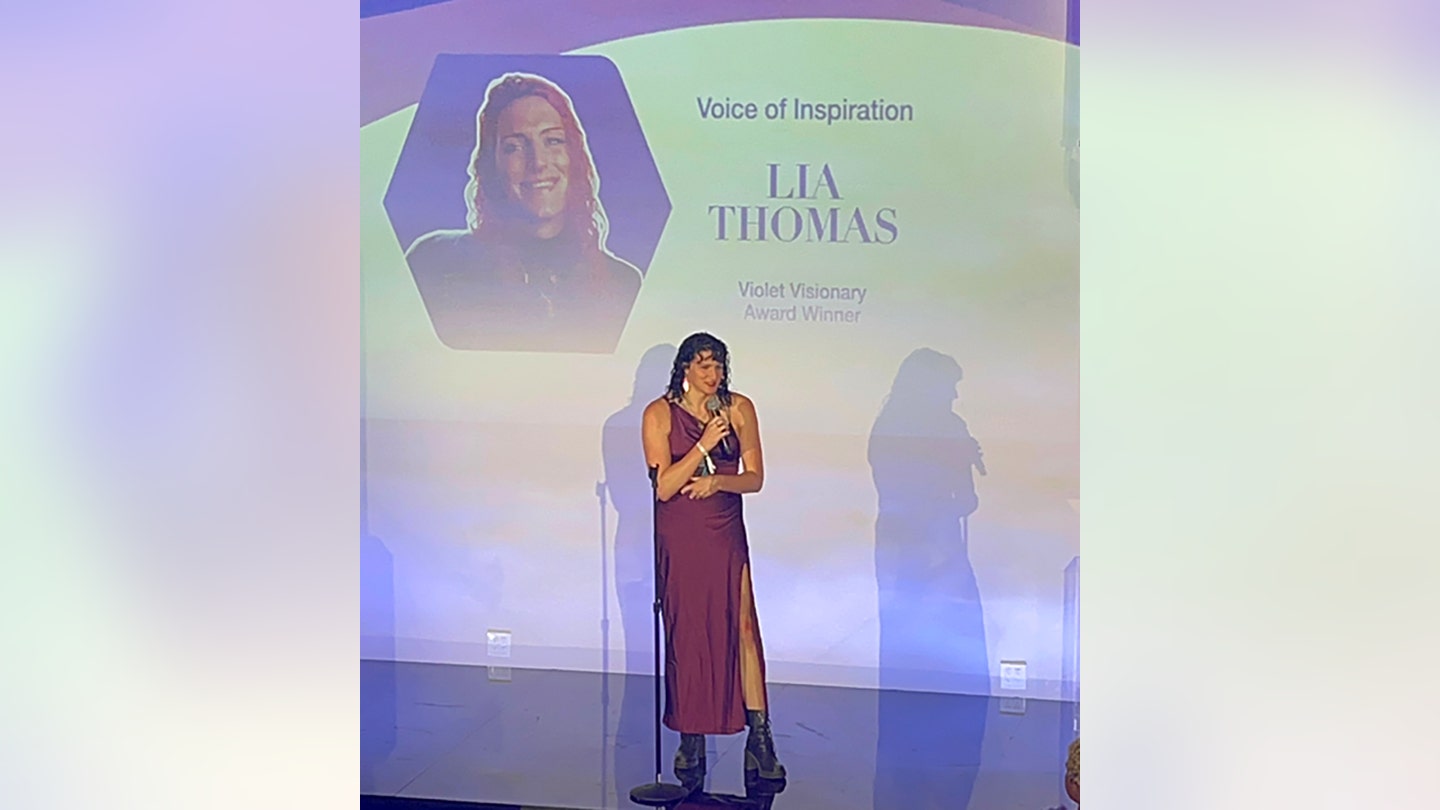 After mingling with the crowd and performing twice in drag, Lia Thomas took the stage to accept the Voice of Inspiration award and doubled down on her efforts to find purpose in trans activism.