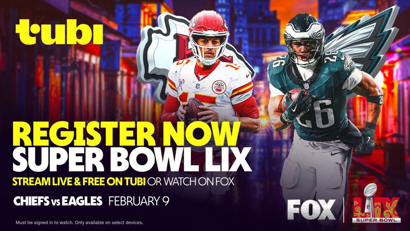 Sign up in Tubi and Stream Super Bowl Lix for free