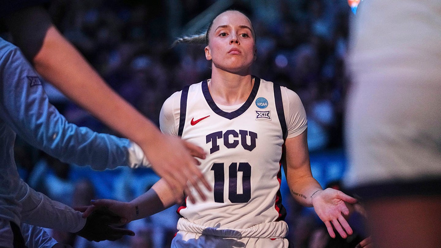 Hailey Van Lith of TCU goes around the field during the introductions before the first half in the second round of the NCAA College basketball tournament against Louisville in Fort Worth, Texas, Sunday March 23, 2025. (AP photo / Tony GUTIERREZ)