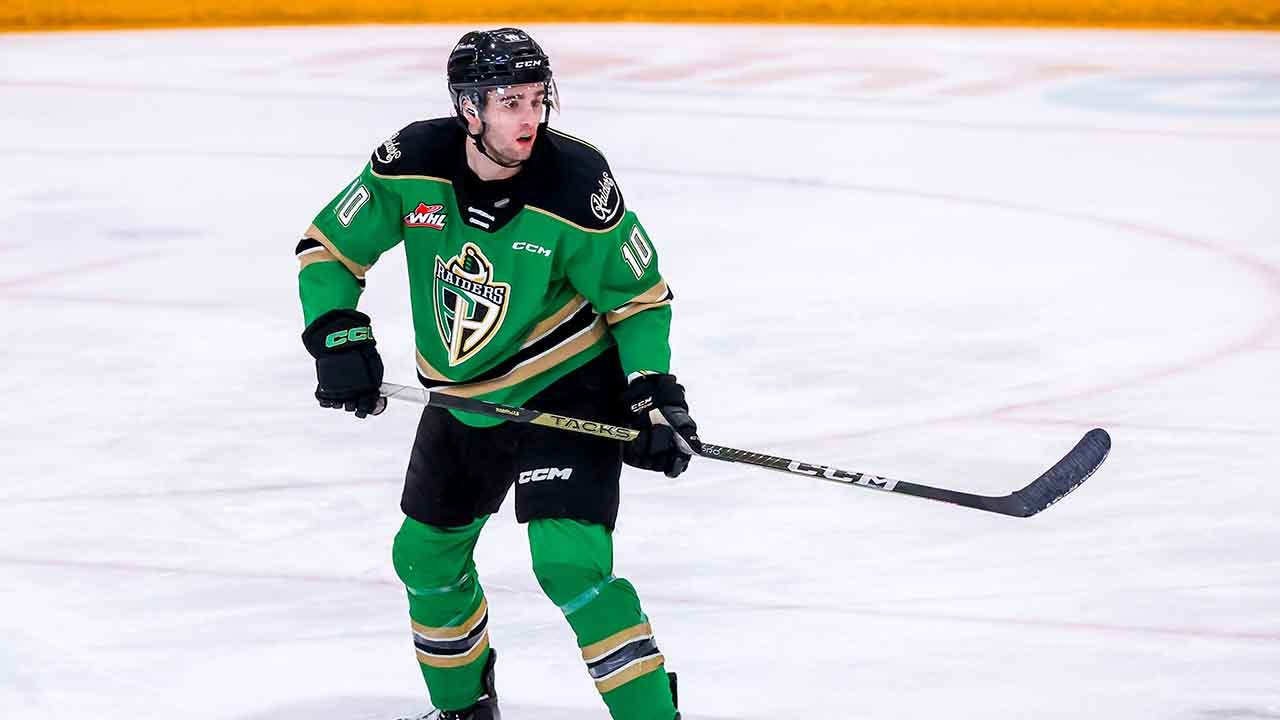 Terrell Goldsmith, n ° 10 of Prince Albert’s raiders, patina during a second period action against Winnipeg ice in Wayne Fleming Arena on March 18, 2023, in Winnipeg, Manitoba, Canada. (Jonathan Kozub / Getty Images)