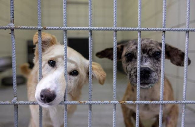 Stray dogs look from behind bars as they are treated at the animal rehabilitation center in Istanbul Municipality, Turkey, May 27, 2024. PHOTO: REUTERS
