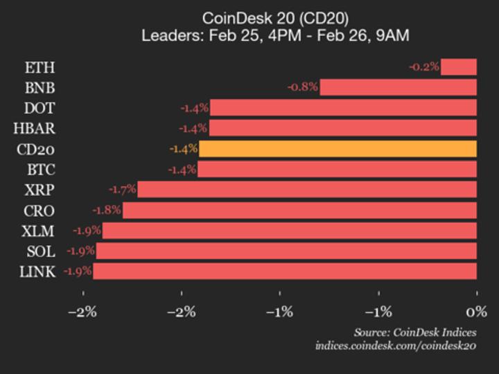 Leaders: ETH (-0.2%) and BNB (-0.8%).