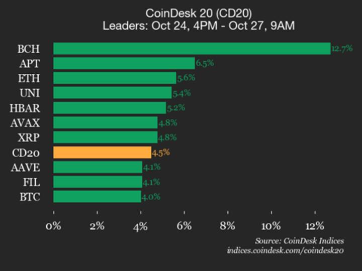 Leaders: BCH (+12.7%) and APT (+6.5%).