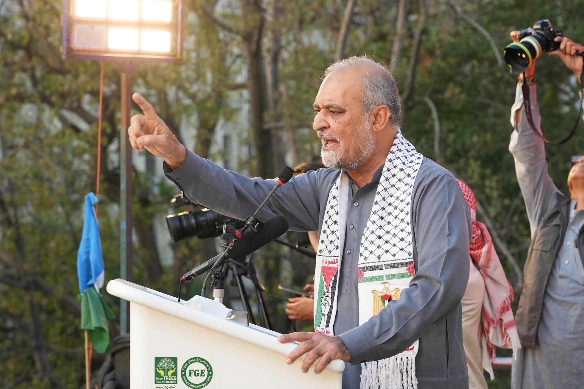He also said that letters are sent to the head of Islamic states and human rights organizations, calling for support and decisive measures against American policies supporting Israel. “Karachi will direct this movement against the slaves of America. We will succeed in this struggle,” he added.