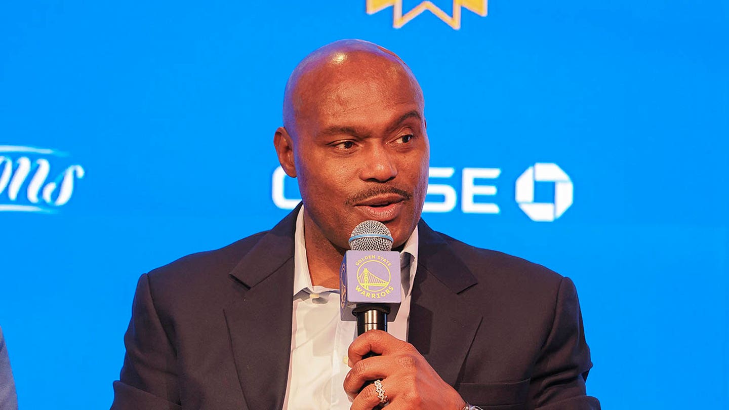 Former Golden State Warriors Tim Hardaway player speaks to the media before the match against the San Antonio Spurs at the Chase Center. (Kelley L COX-USA TODAY SPORTS)
