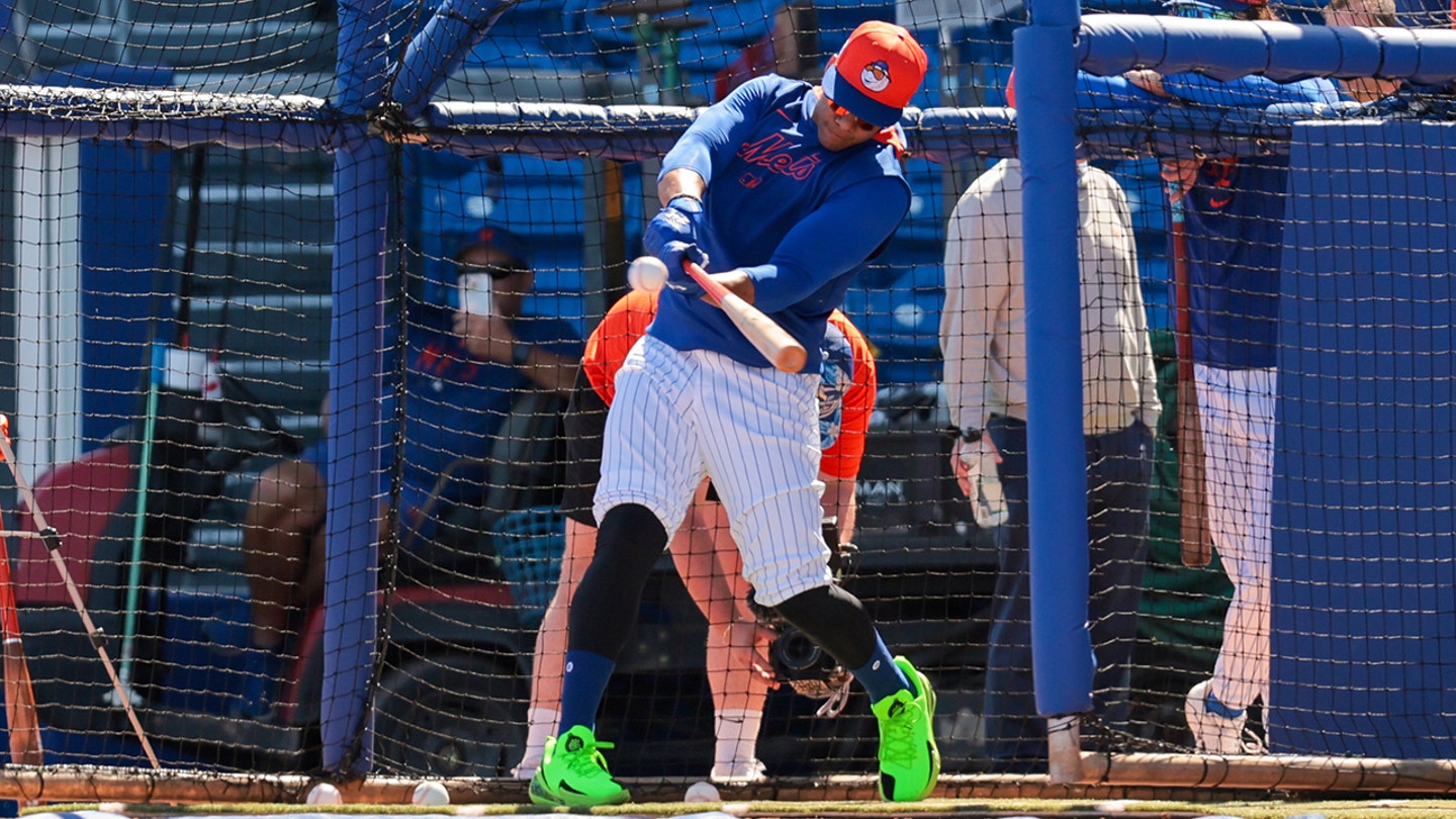 The New York Mets left -hand player, Juan Soto, n ° 22, takes shot practices during training training in the spring at Clover Park. (Sam Navarro-Imagn images)
