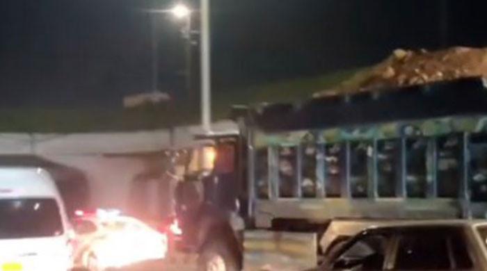 The traffic police had contacted the president of the Dumper Association, Liaquat Mehsud, and others to arrest the Duper driver who fled the traffic police on Sharea Faisal. At first, they asked for time, but then went back on their promise and did not put the Dumper and its driver in front of the police.