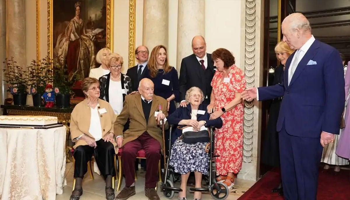 The King, accompanied by Queen Camilla, led a rendition of “Happy Birthday” for three guests also celebrating their 100th birthday, presenting them with commemorative cards and sharing cake among around 190 attendees.