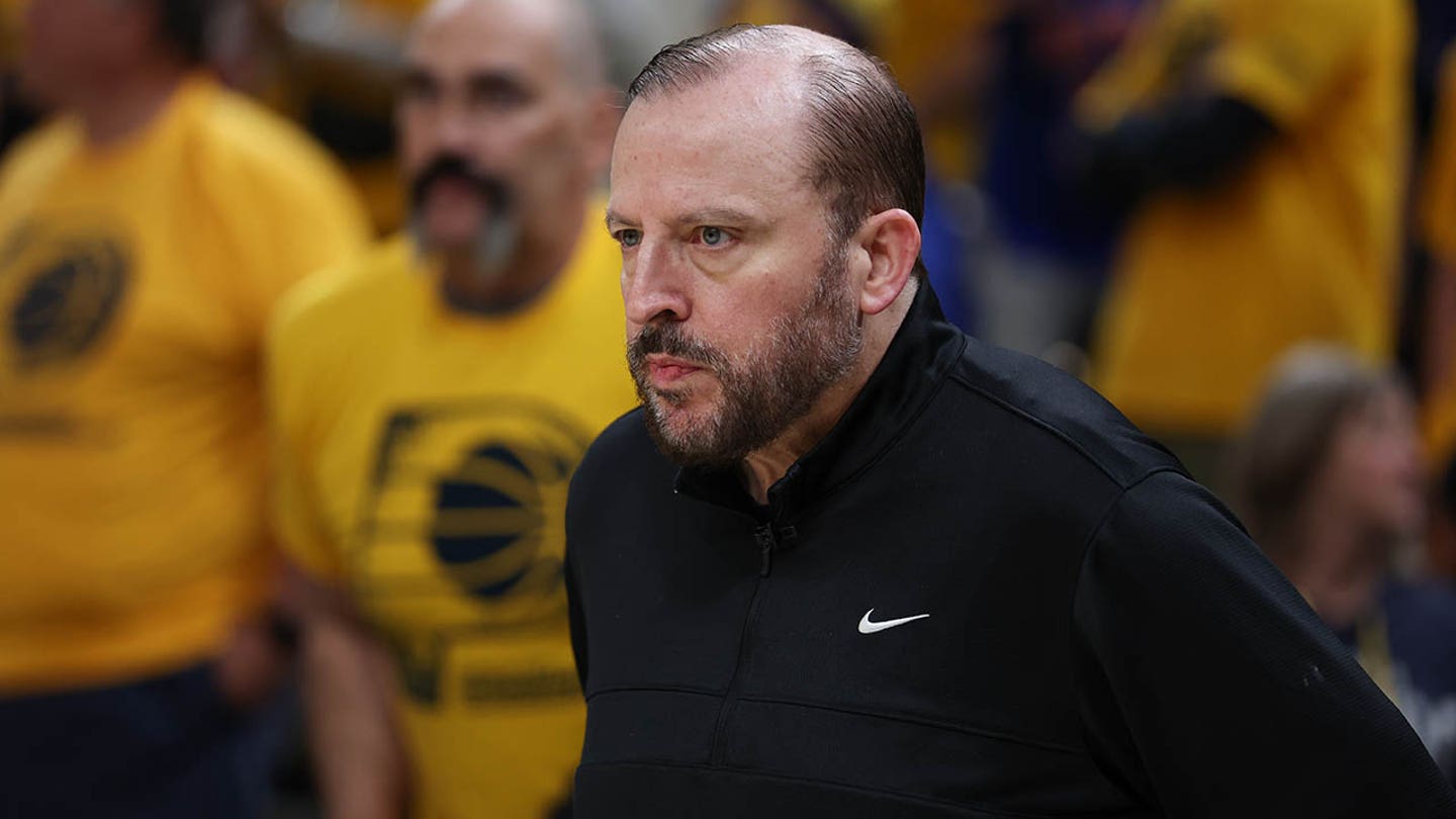 New York Knicks head coach Tom Thibodeau appeared before the sixth game of the Eastern Conference final against the Indiana Pacers for the NBA 2025 qualifiers in Gainbridge Fieldhouse in Indianapolis on May 31, 2025. (Images of Trevor Ruszkowski-Imagn)