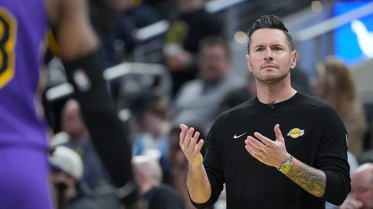 Los Angeles Lakers head coach JJ Redick questions a call in the Indianapolis Pacers match on Wednesday March 26, 2025. (AP photo / AJ MAST)
