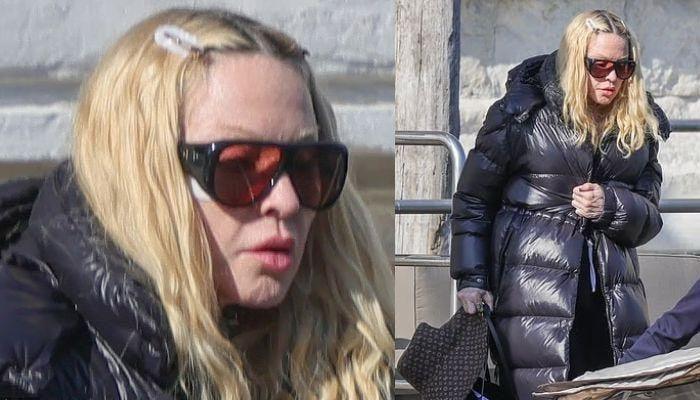 Madonna wore a long coat and chunky sunglasses, keeping her look simple and covered up.