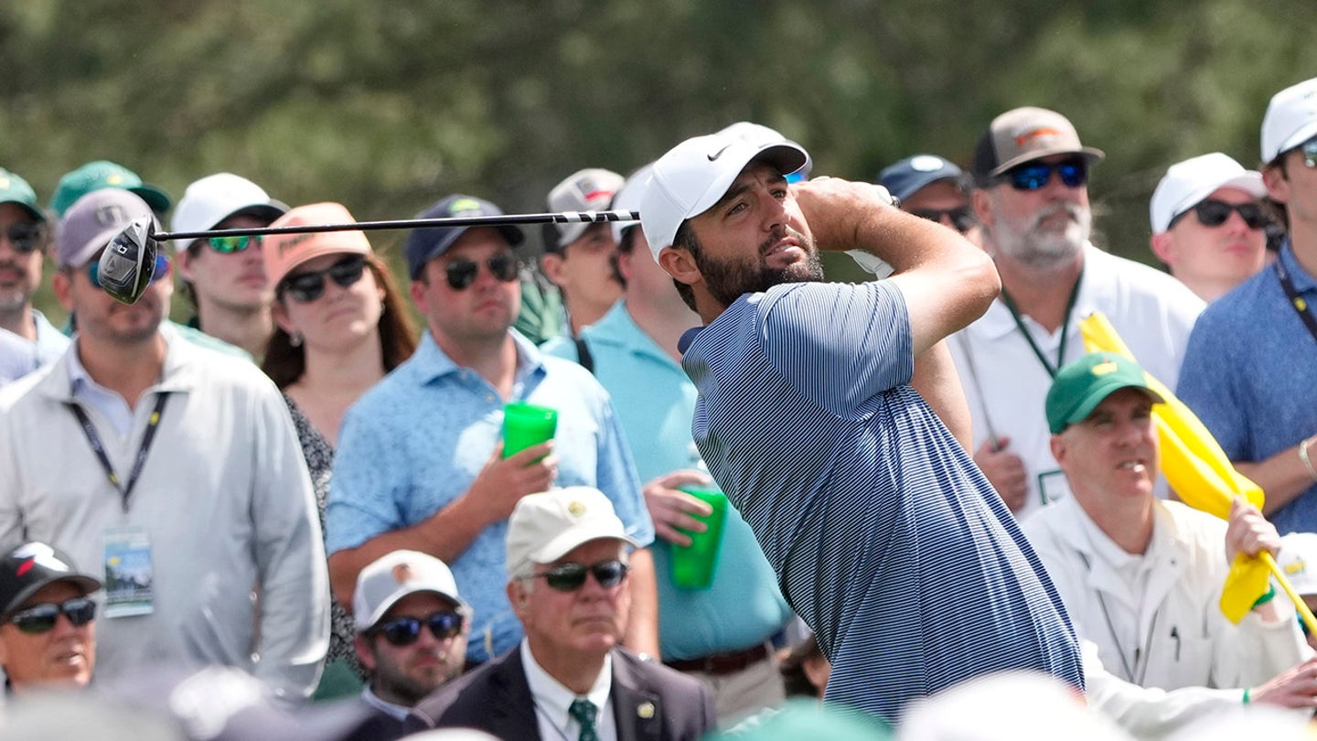 Scottie Scheffler plays his 18th tee shot in the second round of the masters at the Augusta National Golf Club. (Michael Madrid / Imagn Images)