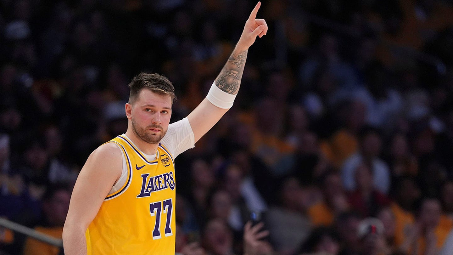 Los Angeles Lakers Guard Luka Doncic is making gestures when he returned in the first half of a basketball match of the NBA against Utah Jazz, Monday, February 10, 2025, in Los Angeles. (AP photo / Mark J. Terill)