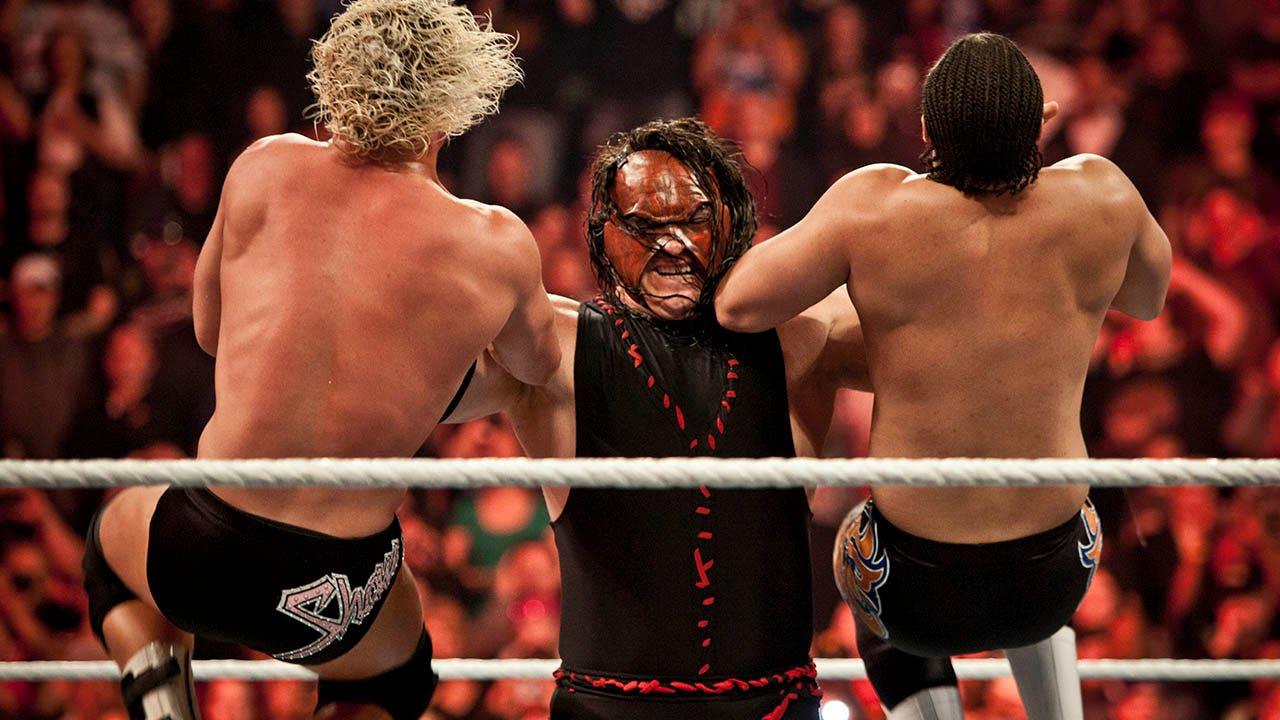 Kane eliminates two best stars at a WWE RAW event on February 27, 2012. (Ryan / Corbis via Getty Images)