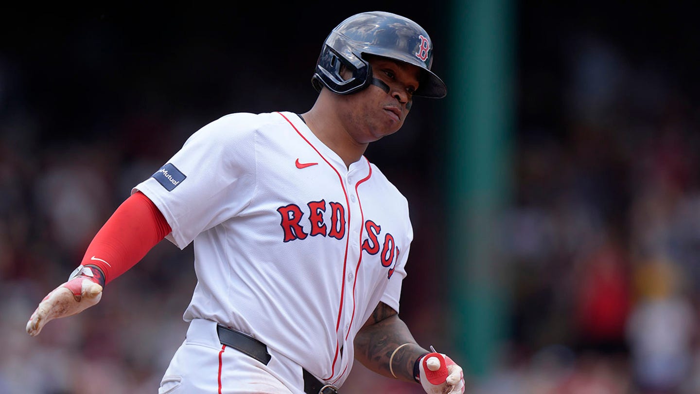 Rafael Dévers de Red Sox directs the bases after hitting a two -point circuit against the Kansas City Royals, on July 14, 2024, in Boston. (AP photo / Steven Senne)