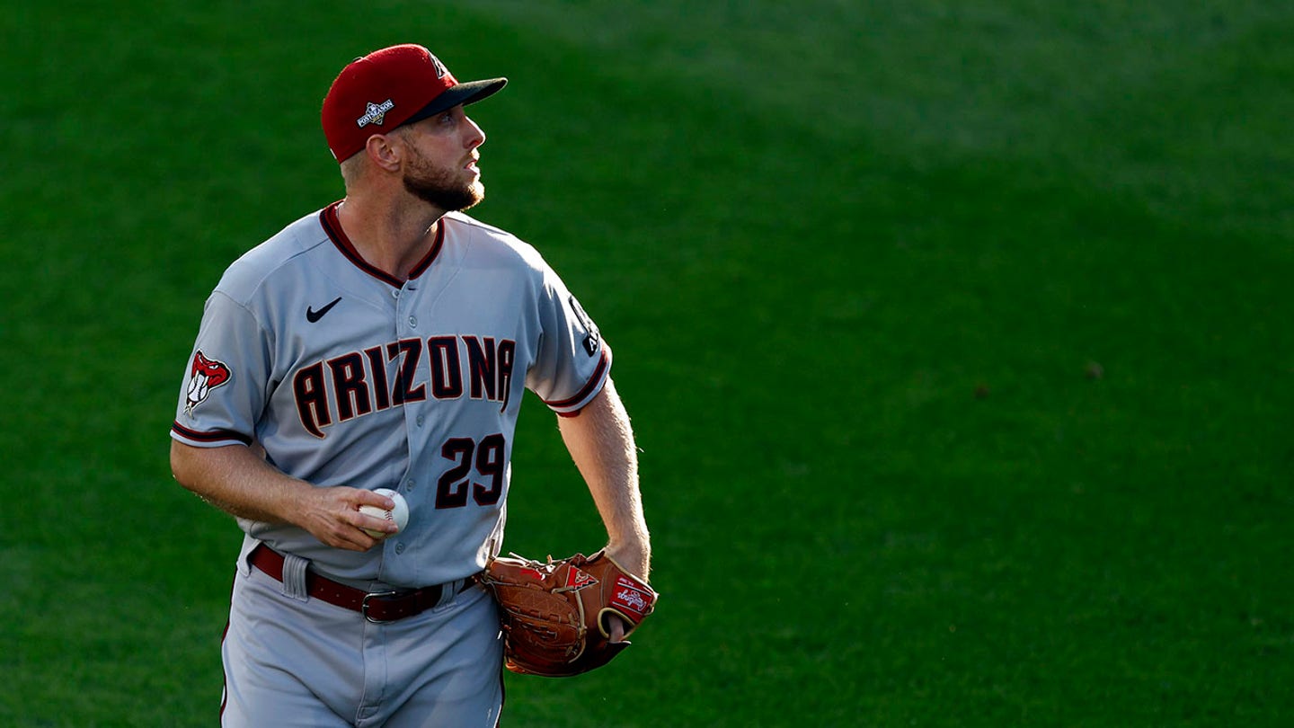 Merrill Kelly (29) of the Arizona Diamondbacks looks on before Game 6 of the Championship Series against the Philadelphia Phillies at Citizens Bank Park on October 23, 2023 in Philadelphia, Pennsylvania. (Rich Schultz/Getty Images)