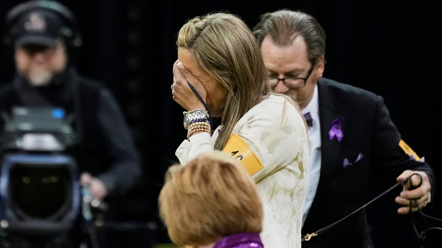 Katie Bernardin, center, reacts after winning the best in the show with Monty, a Giant Schnauzer, during the 149th Westminster Kennel Club Dog Show, Tuesday, February 11, 2025, in New York. (AP photo / Julia Demaoree Nikhinson)