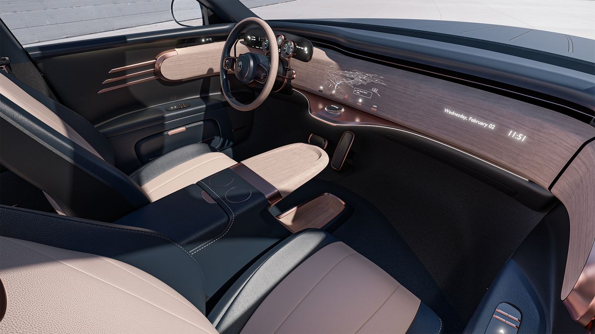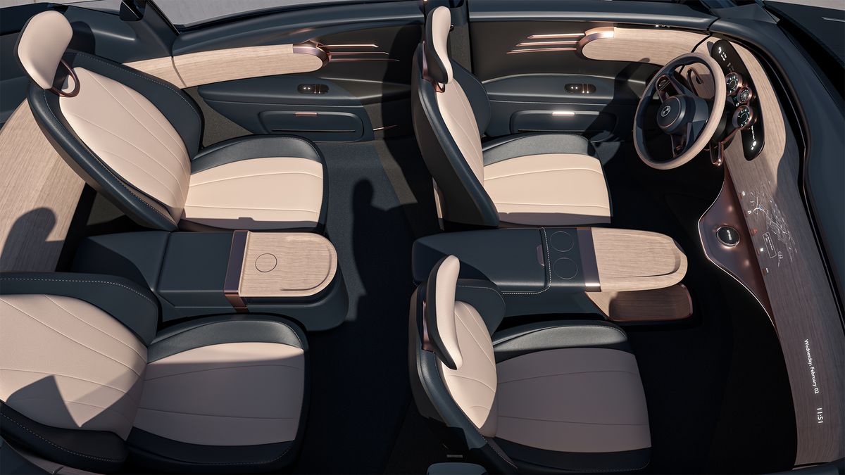The first unnamed start model will be available with everything, configurations from three to seven places, with each seat including its own independent lighting and climate controls.